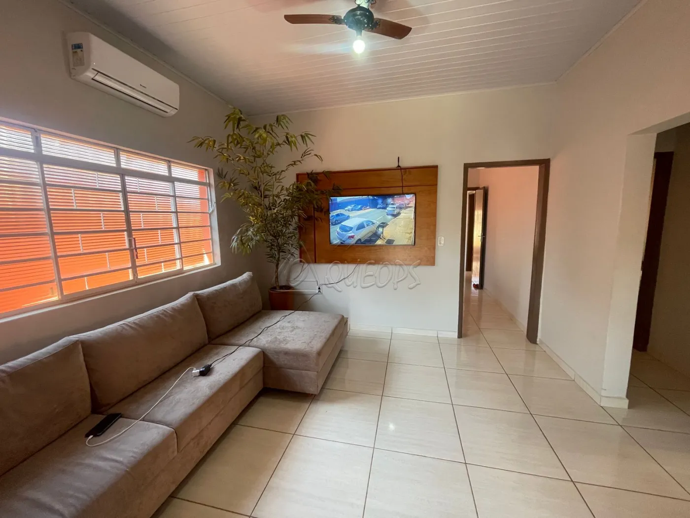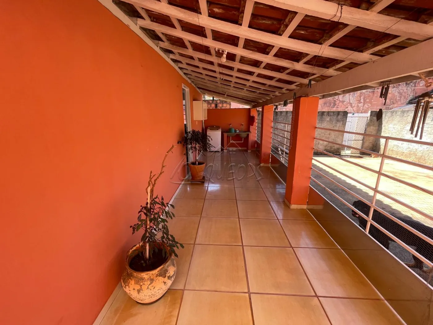 03 dormitórios, sala, copa, cozinha, wc social, varanda nos fundos com área de serviço, quintal cimentado com canil, piso de ceramica interno e teto de laje