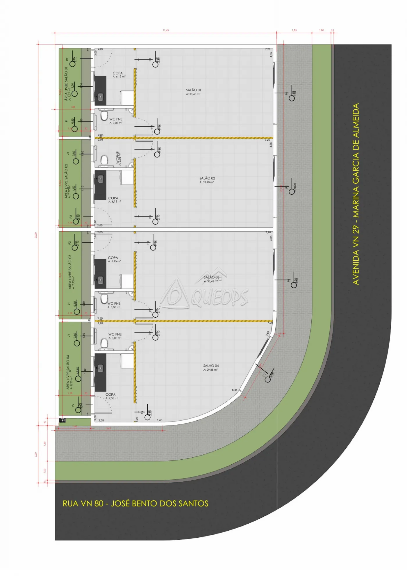 Salas com wc, piso porcelanato, teto laje, 1 vaga privativa Salas 601, 602, 607 e 608, cada unidade com as seguintes medidas:- área privativa 36,86 m², 12,00 m² - 1 vaga, área de uso comum 18,0640 m², área total 66,9240 m². Salas 603, 604, 605, 606 e 609, cada unidade com as seguintes medidas:- área privativa 34,44 m², 12,00 m² - 1 vaga, área de uso comum 17,0296 m², área total de 63,4696 m². sala 610, unidade com as seguintes medidas:- área privativa 34,89 m², 12,00 m² - 1 vaga, área de uso comum 17,2219 m², área total 64,1119 m². Sala 611, unidade com as seguintes medidas:- área privativa 34,26 m², 12,00 m² - 1 vaga privativa, área de uso comum 16,9526 m², área total 63,2126 m².