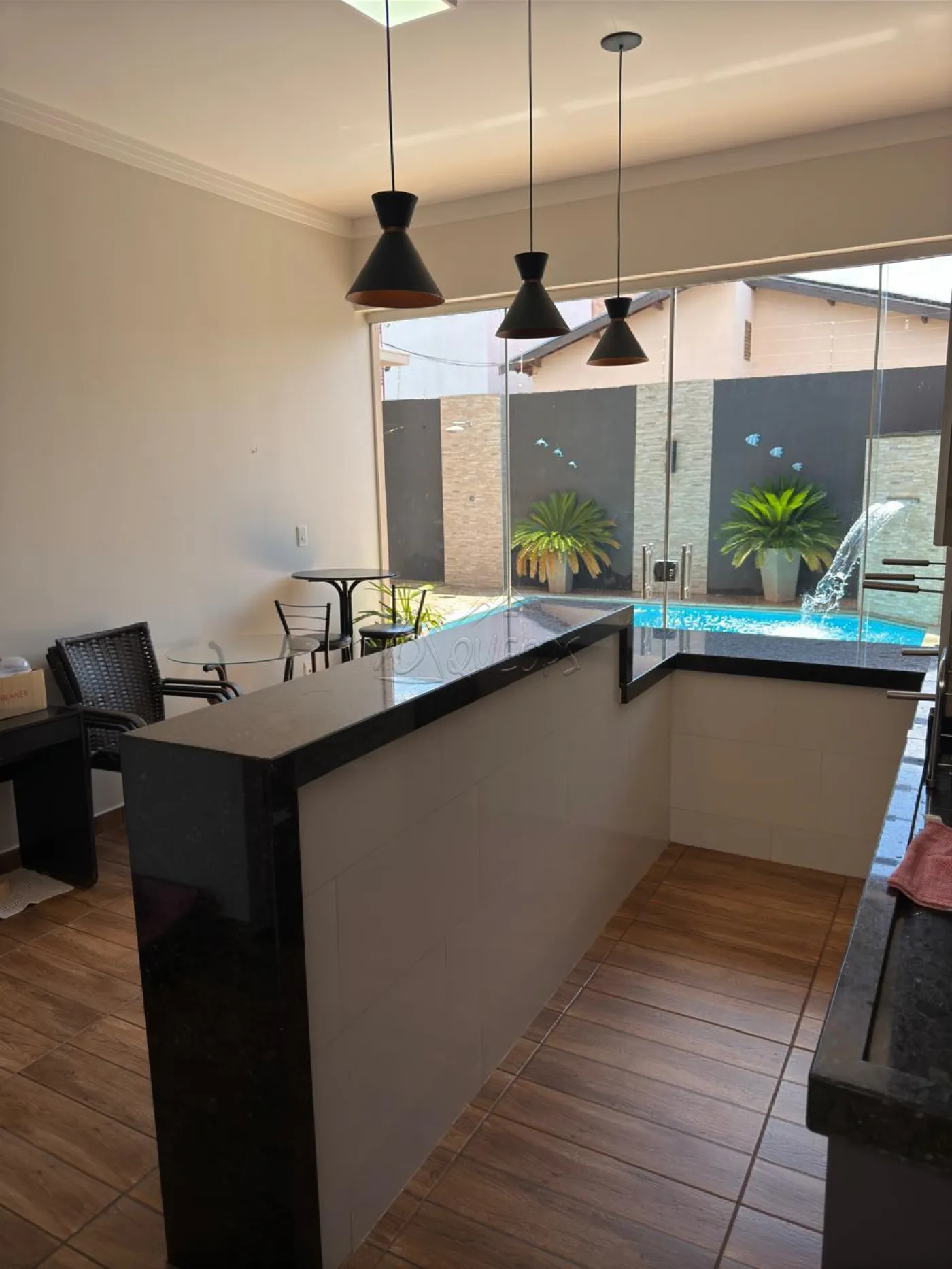 2 dormitórios sendo 1 suíte com closet, sala, cozinha planejada com cooktop e coifa, w.c. social, varanda gourmet com balcão, pia, churrasqueira, cooktop, lavabo externo, piscina com aquecimento, lavanderia coberta, quintal com pedras portuguesa, garagem para 2 carros, jardim frontal, piso de porcelanato, teto de laje com acabamento em gesso na sala, portão eletrônico, concertina, área do terreno 200,00 m² sendo área construída 131,40 m².
