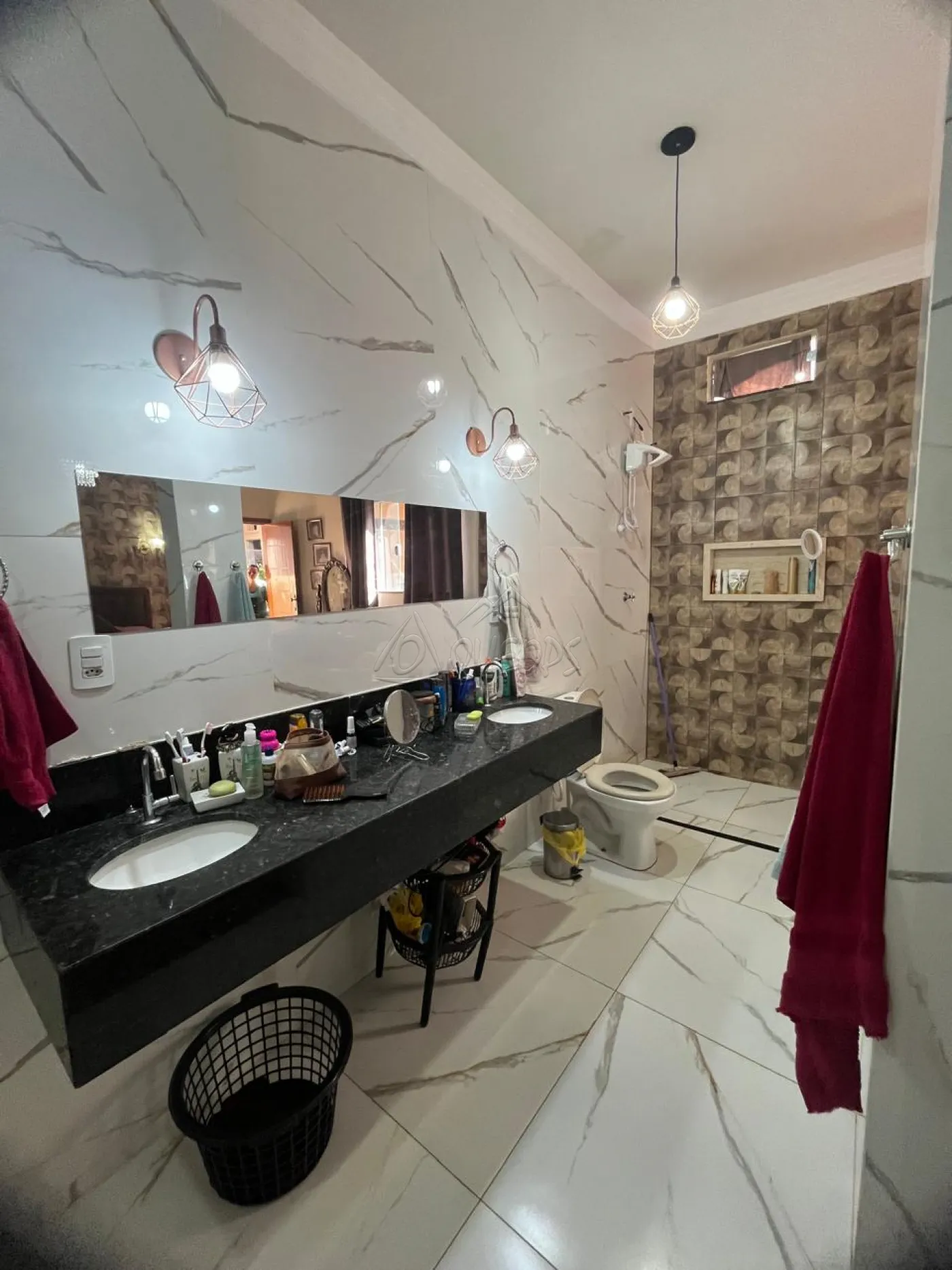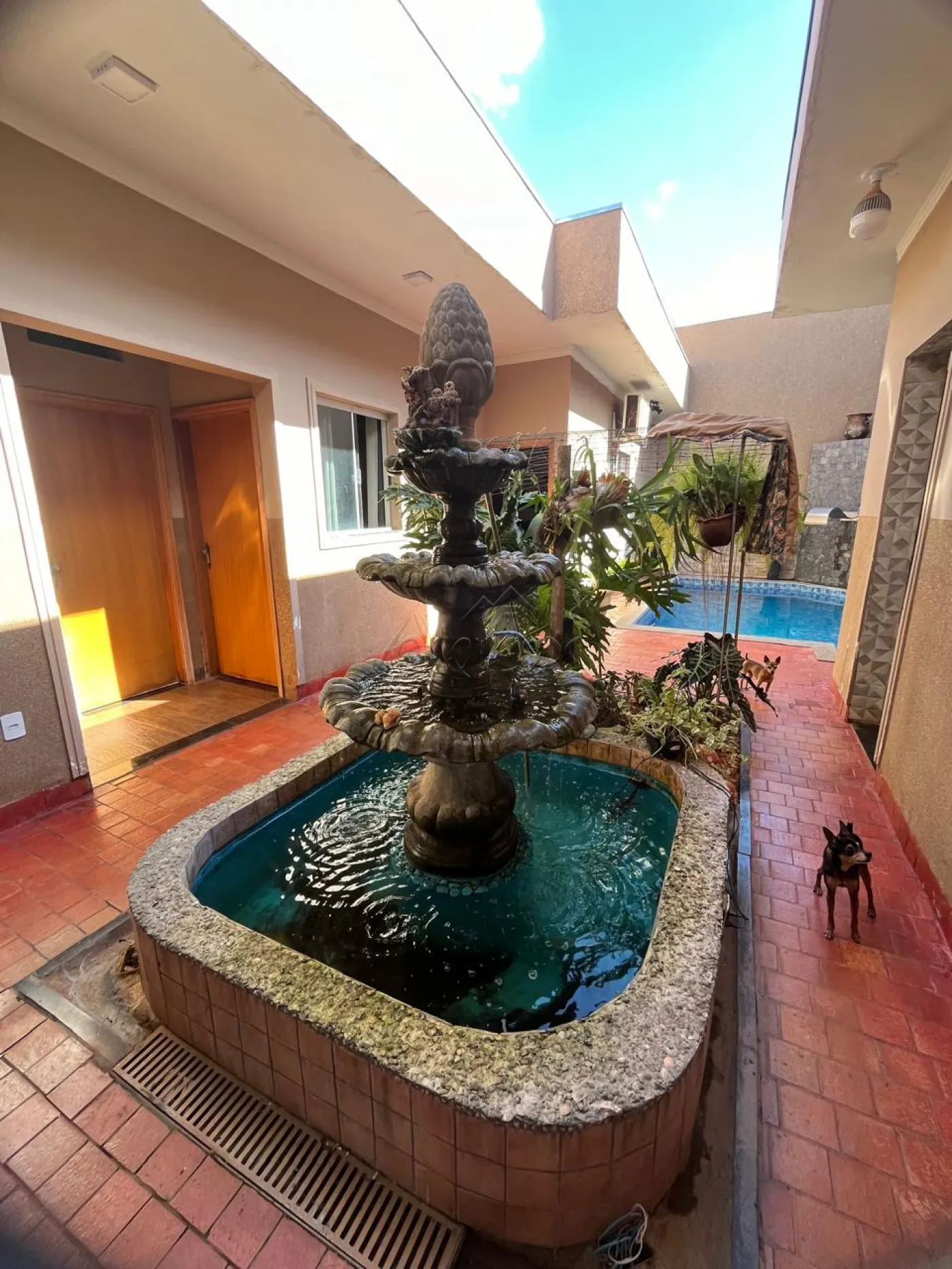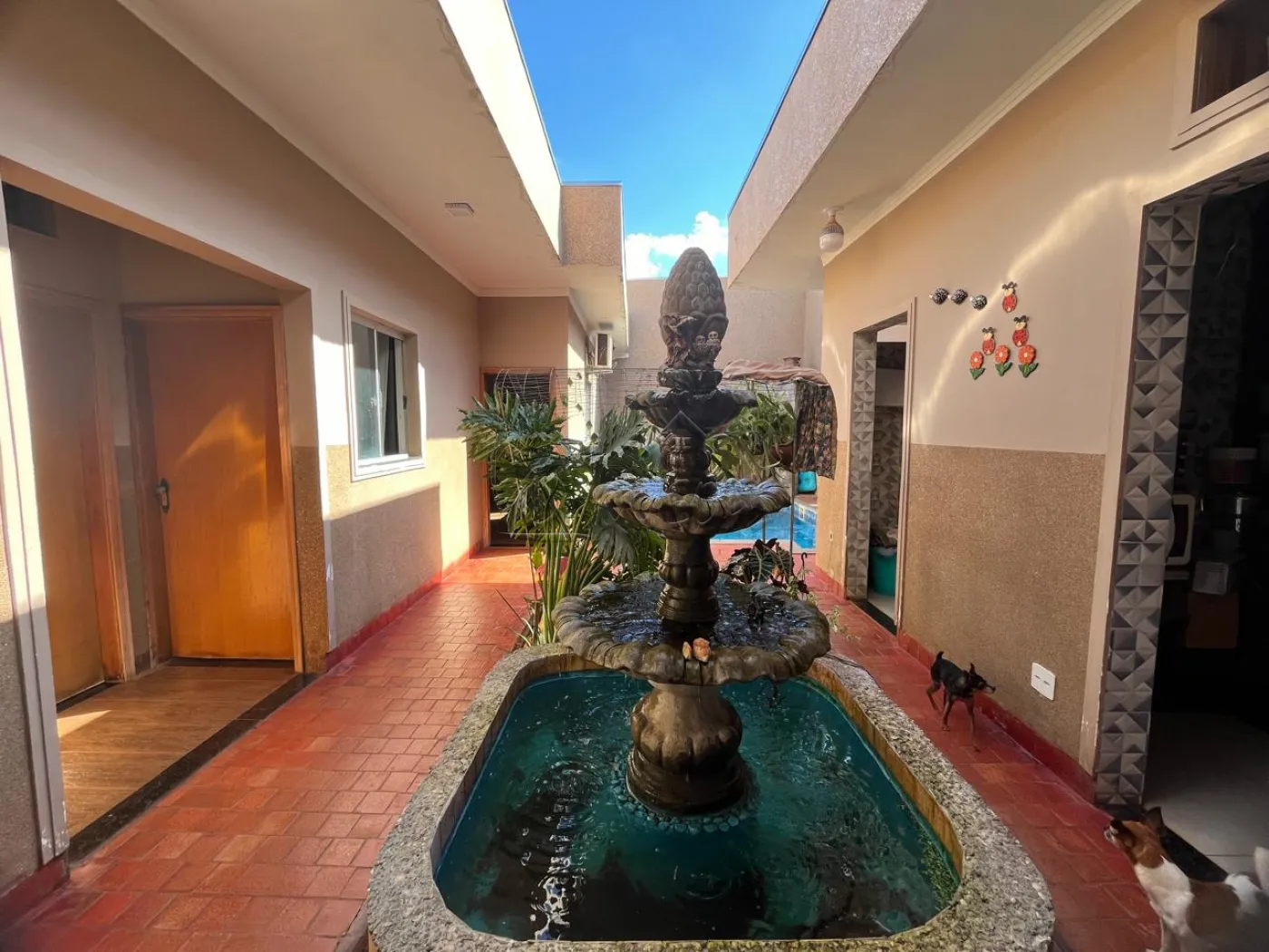 3 dormitórios sendo 1 suíte com hidromassagem, hall de entrada, escritório, sala ampla, cozinha gourmet com churrasqueira, banheiro social, mezanino com sacada e banheiro, lavanderia fechada, despensa, banheiro externo, quintal com fonte decorativa, piscina em vinil com cascada e hidro, piso frio, teto de laje, garagem para 2 carros, área do terreno 261,80 m² área construída 194,50 m².