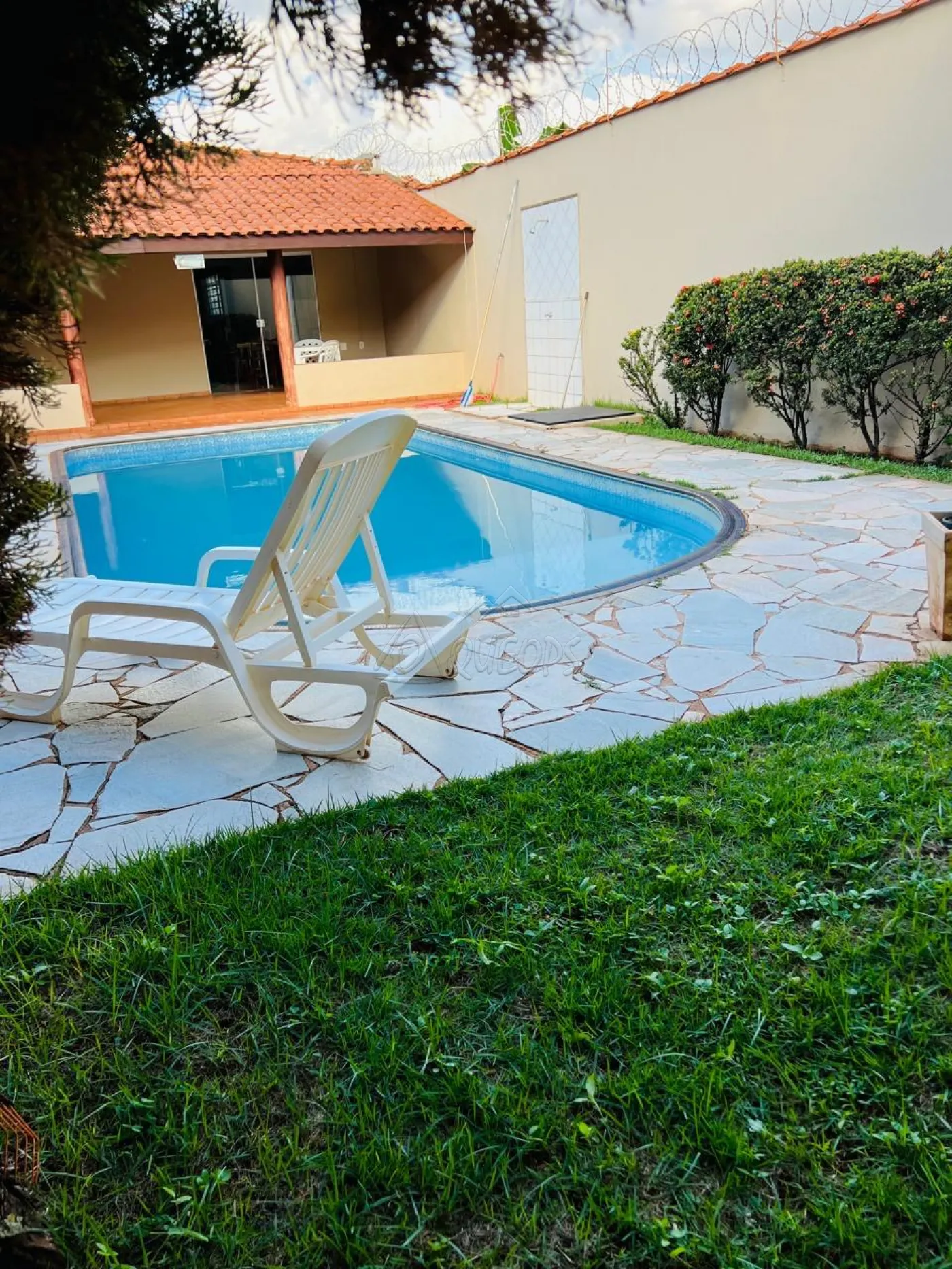 4 dormitórios sendo 1 suítes com armário e hidromassagem e 1 suíte externa, sala TV, estar e jantar, cozinha planejada, cozinha, wc social, varanda com balcão, pia e churrasqueira, despensa, lavanderia fechada, wc externo, piscina vinil, quintal com jardinagem e pedras, piso porcelanato e frio, teto laje, cerca elétrica, portão eletrônico, ventiladores e ar condicionados, aquecedor solar, área do terreno 484,00 m² sendo área construída 206,00 m².